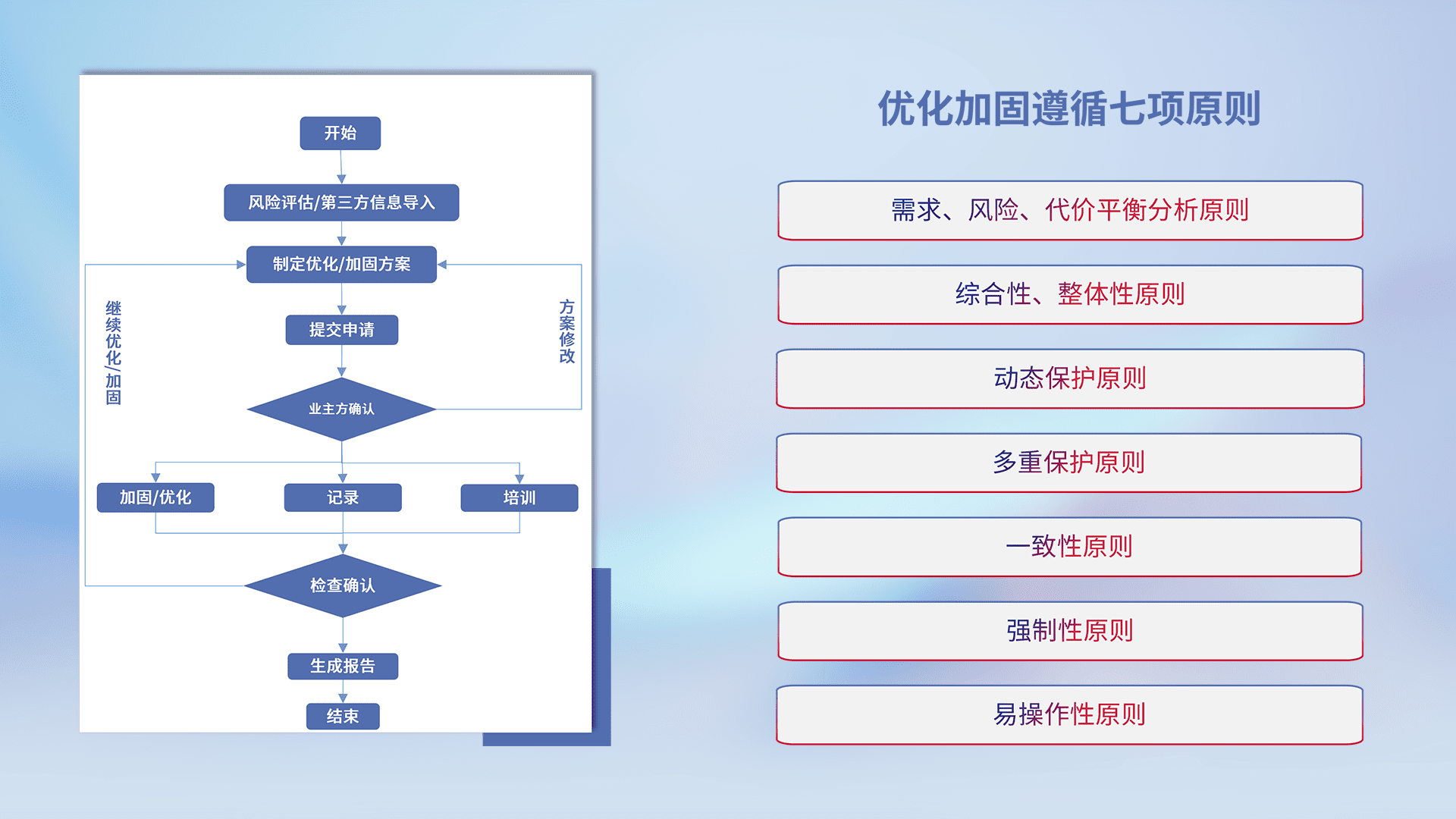 最大程度利用现有资产,,对评估发现的问题进行封堵与整改,,防止漏洞被利用,,,提升整体网络安全性,,为客户带来高标准的优化加固服务。。